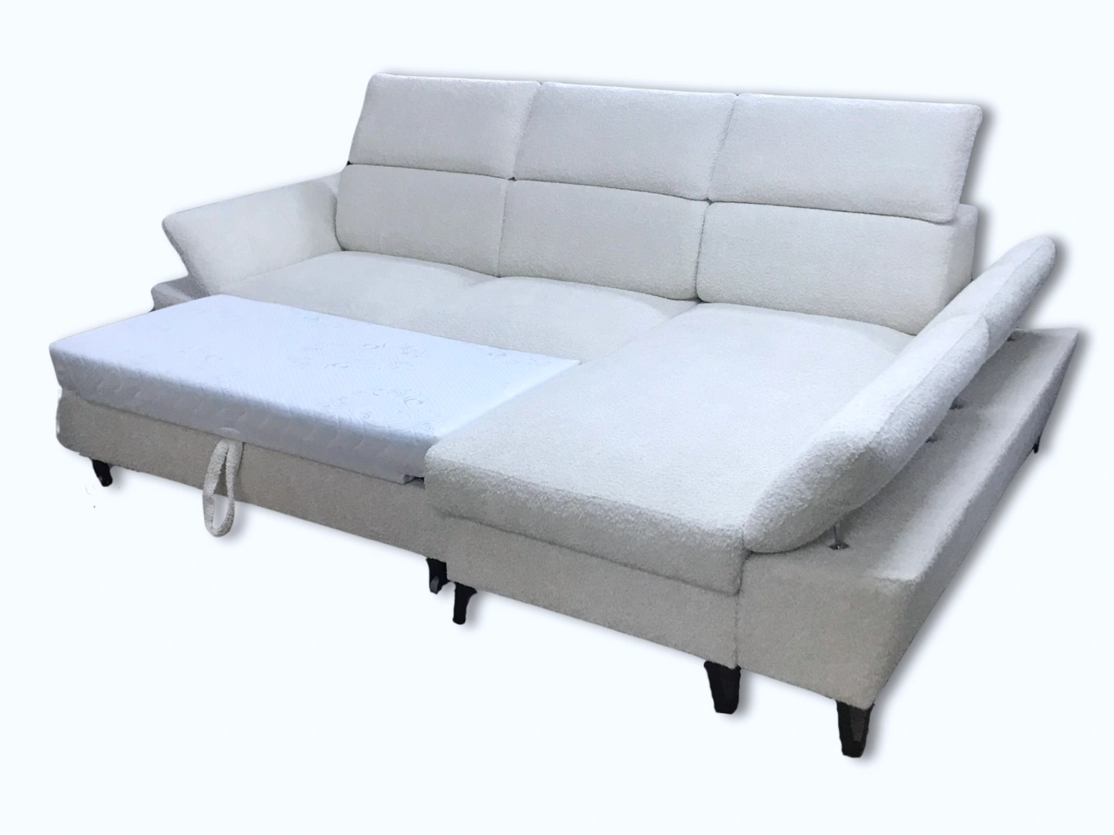 Funkcia spania – rohová pohovka vybavená pohodlným, intuitívnym rozkladacím mechanizmom typu delfín , ideálnym na spanie.